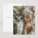 Cartão Postal Fada Loira Adorável e Coruja