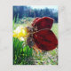 Fada com asas vermelhas e vestido roxo Cheirando no amarelo Daffodils Flores Fadas e Foto pelo artista Sandy Closs Fairy, fadas, píxias, píxias, fantasia, flores, borboletas, vermelho, amarelo, roxo, conto de fadas primavera, feira