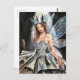 Uma bela fada em um desfile de moda modela um vestido feito de reciclados como folha de alumínio prateado