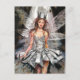 Uma bela fada em um desfile de moda modela um vestido feito de reciclados como a folha de prata
