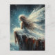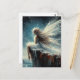 Uma fada bonita em um vestido branco fica em um penhasco olhando para o mar fantasia IA gerada arte