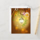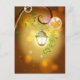 Uma fada bonito de borboletas com asas de anjo rosa descansando sobre uma videira perto de uma lanterna brilhante com folhas e bolhas flutuando pelo ar.
