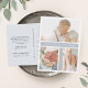 O obrigado de fotos elegante e moderno de casamento que você faz com cartões postais apresenta três fotos favoritas e uma faixa central em cinzas leves, com suas saudações e/ou nomes personalizados. Adicione uma mensagem pré-impressa personalizada de obrigados ao verso ou exclua o texto de amostra se usar uma mensagem manuscrita.