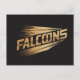 A bold golden “Falcons” typography design featuring dynamic speed streaks that create a sense of motion and power. The metallic-style lettering and sharp graphic accents give this artwork a strong athletic and competitive vibe. With its clean composition and energetic visual style, this design is perfect for falcon fans, sports spirit, and anyone who loves powerful team-inspired graphics with a sleek modern edge.