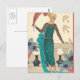 Estilo Art Deco Ilustração de uma jovem vestindo um vestido verde e preto observando pombas próximas por George Barbier. George Barbier 1882 - 1932 foi um dos ilustradores franceses excelentes do início do século 20. Ele é bem conhecido por suas comissões para design e fantasias de balé.