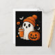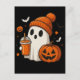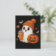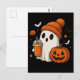 Cartão Postal Fantasma Bonita do Halloween com Abóbora e Beba