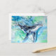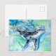 pintura tradicional em aquarela do aparecimento fantasmagórico de uma baleia jubarte em aquarelas azuis em um cartão postal.