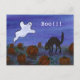 Cartão Postal Fantasma e Gato Negro no Patch de Abóbora