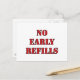 Esta design apresenta um cartaz que diz "No Early Refills" para ajudar farmacêuticos e técnicos de farmácia a explicar que recargas de prescrição precoce estão fora de questão.