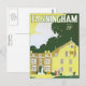 Viagens vintage de poster para excursões de transporte a Farningham em Sevenoaks, Kent, Inglaterra, em uma ilustração de estilo de deco com linhas simplistas e bloqueio de cores.