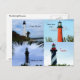 Este cartão tem fotografias dos faróis do Cabo da Flórida, Júpiter, Hillsboro Inlet e Rua. Augustine.