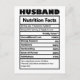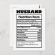 Cartão Postal Fatos Nutricionais do Marido Engraçado Piadas