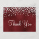 Crie sua própria folha vermelha escura e elegante e obrigado de confete de diamante prateado. A película glamourosa é um efeito fotográfico impresso. Personalize a mensagem do obrigado.