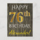 Cartão Postal Faux Wood, Faux Dourado 76.o aniversário + nome pe
