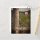 Personalize as charmosas Pastas da Fazenda Verde Obrigado Cartaz com sua própria mensagem pessoal de gratidão e apreço pelos presentes recebidos depois de uma fazenda rural ou chá de celeiro rústico, festa de noivado ou tema de casamento em fazenda. Este obrigado personalizado natural que você postcard apresenta uma fotografia de fazenda cênica e quinta de um prado verde com rolos de feno à distância com uma cerca de arame farpado de madeira no primeiro plano.