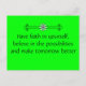 Citação inspiradora de Robert Gebbie. Essas afirmações fazem parte de nossos escritos motivacionais e inspiracionais. O texto diz: Tenha fé em si mesmo, acredite nas possibilidades e faça o amanhã melhor.