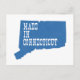 Com o contorno do estado preenchido em azul e o texto Feito em Connecticut em letras brancas em negrito, qualquer 'nutmegger' será lembrado de casa ao receber este cartão postal.