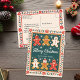 Este cartão-postal de Natal personalizável, com seis diferentes biscoitos de pão-de-gengibre, cada um com a sua própria personalidade desenhada à mão, contra um fundo acolhedor e escuro. Flocos de neve estilizados e estrelas adicionam um toque de magia de inverno, tudo emoldurado por uma borda caprichosa de folhagem festiva. O texto é personalizável. Sacudir-o e a mesma charmosa garland fica nas costas, uma canvas perfeita para a sua mensagem pessoal. O endereço pré-escrito de saudação e devolução são espaços reservados que você pode personalizar facilmente, permitindo que você torne este cartão realmente seu. É mais do que um cartão postal, é um pedacinho de alegria de pão de gengibre.