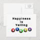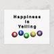 O texto diz "Felicidade é gritar BINGO". A palavra bingo é escrita em bolas de bingo 3D com uma bola de cor diferente para cada letra. B é vermelho, I é azul, N é verde, G é amarelo e O é roxo. Tem um amante de Bingo na sua vida? Este é o presente perfeito para eles.