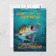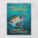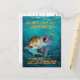 Um robalo de desenho animado é retratado com a boca bem aberta, prestes a morder uma isca. A imagem apresenta a frase Dinheiro Não Compra Felicidade, Mas Compra Muito Equipamento de Pesca, Que é Basicamente a Mesma Coisa.