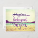 A felicidade é boa para você! Consiga esta inspiradora design tipográfica de "felicidade parece boa em você" com design de fundo de cena de praia serena em uma grande variedade de produtos.