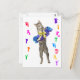 Cartaz de boas-vindas imagem de um gato bonitinho em pé sobre as pernas traseiras carregando um presente decorativo com um arco grande nos braços