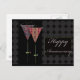 Dois copos coloridos de vinho / martini contra um fundo de deco de arte negra com Happy Anniversário no texto do roteiro.