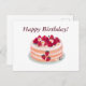 Cartão Postal Feliz Aniversário Bolo de Morango e Flores