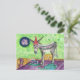 Eu moro em uma ilha onde os burros vagueiam livres. Eles estão um pouco domesticados por causa do contato com os turistas, mas ainda são um pouco selvagens! Eu estou pintando imagens de burros há muitos anos depois de viver no Caribe de vez em quando por 15 anos. Qualquer um que tenha burros vai gostar deste cartão, pois entenderá que os burros não gostam de ficar sozinhos, eles se dão melhor em pares. Este cartão de Feliz Aniversário é caprichoso, já que o burro está na mesa comendo o bolo, sendo travesso como os burros são. O relógio está daquele jeito porque o tempo é relativo e devemos apenas aproveitar a idade que temos, pois não há escolha!