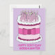 Um grande bolo de aniversário rosa e mauve com as palavras "Feliz Aniversário, Padrinha".