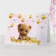 Envie os mais calorosos votos de aniversário com este cartão de saudação irresistivelmente fofo, apresentando um adorável ursinho de pelúcia cercado por balões dourados e pérolas. Com tons pastel suaves e grandes olhos brilhantes, este charmoso design é perfeito para crianças, adolescentes ou qualquer pessoa que aprecie um toque de doçura no seu dia especial. O estilo desenhado à mão adiciona um toque sincero, tornando este cartão ideal para aniversários, chás de bebê ou simplesmente para alegrar o dia de alguém. Seja presenteando-o com um presente ou enviando-o com amor, este cartão de saudação derreterá corações e trará um sorriso todas as vezes. Impresso em papel de alta qualidade e personalizável por dentro, é tão atencioso quanto é lindo.
