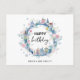 Deseje um feliz aniversário aos seus clientes este ano com este cartão postal super doce, apresentando casas adoráveis, balões e uma linda coroa de flores.