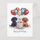 Ilustração fofa de Dachshunds vestidos para uma celebração de aniversário. Perfeito para amantes de animais ou pais de cachorros!