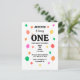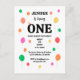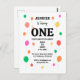 Envie saudações alegres com este cartão postal colorido com um fundo de balão vibrante, perfeito para convidar amigos e família a comemorar o seu primeiro aniversário!