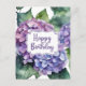 Cartão Postal Feliz Aniversário Flores de Hortênsia Roxa