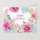Cartão Postal Feliz Aniversário Flores e Pássaros Vibrantes de A