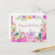 Cartão Postal Feliz Aniversário Flores Vibrantes de Aquarela
