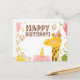 Feliz Celebração de Aniversário Confetti Ballon Candle Giraffe Desenhado