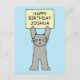 Um grande gato de desenho animado cinza segurando um sinal de cor de limão que diz 'Feliz Aniversário Joshua'. A imagem tem um fundo azul claro.