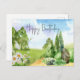 Cartão Postal Feliz Aniversário Paisagem Natural e Flores de Mar