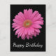 Brilhar o dia especial de alguém com flores! Este charmoso cartão de aniversário floral apresenta uma vibrante flor rosa da margarida Gerbera destacada contra um fundo preto a jato. A parte traseira do cartão é vazio da sua mensagem pessoal. Cartões postais de aniversário são o alternativo econômico para cartões de saudação caros quando você quer enviar uma nota rápida para amigos, familiares e clientes.