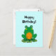 Cartão de aniversário de sapo bonito, a cor de fundo e o texto "Parabéns!" são personalizáveis.