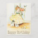 Cartão Postal Feliz Aniversário, Vintage Girl e Cat