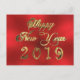 Cartão Postal Feliz ano novo 2019 Script Red e Dourado Chic