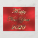 Cartão Postal feliz ano novo 2020 Script Vermelho e Chic Dourado