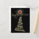 Uma estrela de ouro elegante em cima de uma árvore de Natal com fogos de artifício deseja um Feliz ano novo