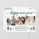 O Cartão-postal de Feriado do Feliz ano novo de Colagem de Fotos da Família de Script de Caligrafia Moderno 3 inclui Árvores de Pinheiros de Aquarela - Script Verde