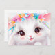 Cartão Postal Feliz Coelhinho de Bebê com Flores e um Arco-Íris