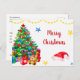Este tema da árvore de Natal Merry Christmas postal com a árvore de Natal com presentes e palavras de "Feliz Natal" na frente. Você pode escrever sua nota personalizada no verso ou excluir o texto e escrever manualmente o texto após a impressão. Todos os textos podem ser alterados - use o menu "personalizar este modelo".