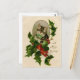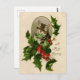 Cartão Postal Feliz de Natal Holly Kitten Arte Antiquada